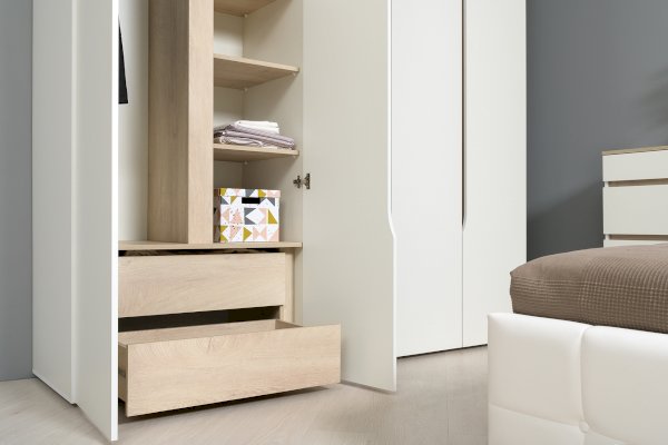 • Выдвижные ящики в шкафу за распашными фасадами