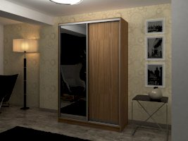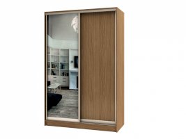 Данное изображение представлено в следующих цветах: корпус - Дуб Феррара, фасады - Дуб Феррара (1 шт.) и зеркало (1 шт.), рамка двери и треки - Серебро матовое.