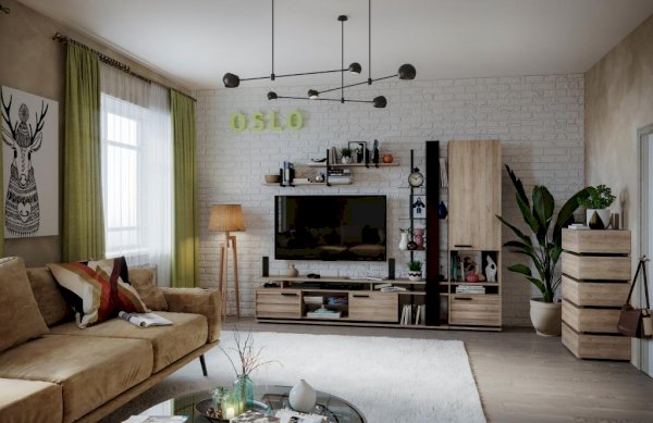 Стильная тумба OSLO 3 является вместительным и функциональным предметом обстановки, не требующим большого количества свободного места. Динамичное сочетание задает ритм - фасад ЛДСП, открытая ниша, рамочный фасад в массивной рамке и раскладкой. Тумба может разместить телевизор диагональю до 60'', а две откидные дверцы позволят спрятать от посторонних глаз повседневные вещи.