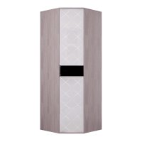 Красивая модель углового шкафа Кимберли выполнена из светлой ЛДСП цвета ясень белый. Фасад распашной дверцы сделан в стиле всей одноимённой коллекции и имеет декоративный фацет и гравировку. Внутри модель разделена на две зоны: для одежды на плечиках предусмотрена хромированная штага, а для других вещей – вместительные полки. Идеальным дополнением является небольшая металлическая ручка.