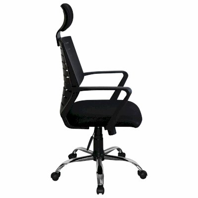 Высокая сетчатая спинка и подголовник, выраженная поддержка поясницы, прочные пластиковые подлокотники, хромированное пятилучие гарантируют комфортное долгосрочное использование.