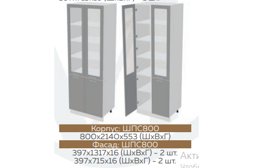 Высота нижних шкафов: 820 мм