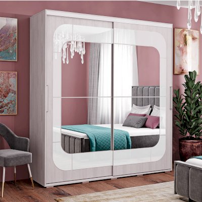 Красивый и многофункциональный шкаф-купе Крафт-7 подойдет для светлого интерьера квартиры или дома. Модель изготовлена из ЛДСП в цвете белый ясень. Раздвижные створки декорированы зеркалом и стеклом - такой прием облегчает конструкцию и позволяет расширить пространство. Внутри модель состоит из многочисленных полок и ящиков для белья и одежды, а также отделения со штангой для плечиков.