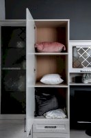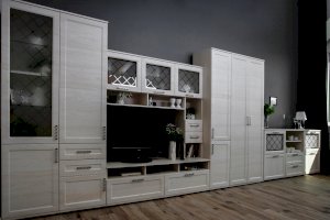 За закрытыми дверками расположены вместительные полки, два выдвижных ящика полного выдвижения, дополняют как внешний вид, так и добавляют дополнительную функциональность модулю.